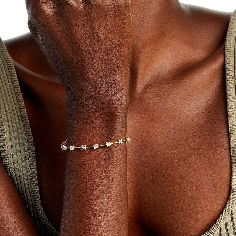 This elegant bracelet combines the timeless appeal of 925 sterling silver with the luxurious finish of 18K gold plating. Featuring a delicate butterfly-shaped design adorned with sparkling diamonds, it offers a versatile accessory that complements both casual and formal styles. Expertly crafted, this piece makes a sophisticated gift choice for girls who appreciate refined fashion and lasting quality.