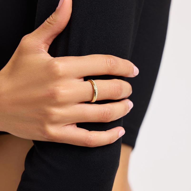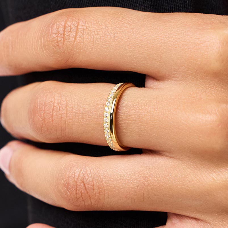 Crafted from 925 sterling silver, this double eternity band features half-set cubic zirconia stones, offering a refined sparkle that complements any style. Designed for women seeking elegant yet durable wedding rings, its timeless design ensures lasting beauty and comfort for everyday wear. Perfect as a symbol of commitment or a sophisticated fashion statement.