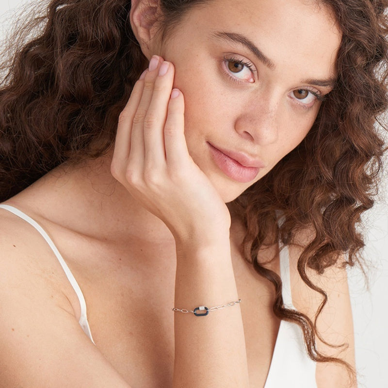 Crafted from 925 sterling silver, this bracelet features a unique combination of neon multicolor enamel and a carabiner paperclip link design. Its vibrant enamel accents add a modern, artistic touch, while the durable silver construction ensures lasting quality. Perfect for those seeking a bold yet refined accessory that complements both casual and sophisticated styles.