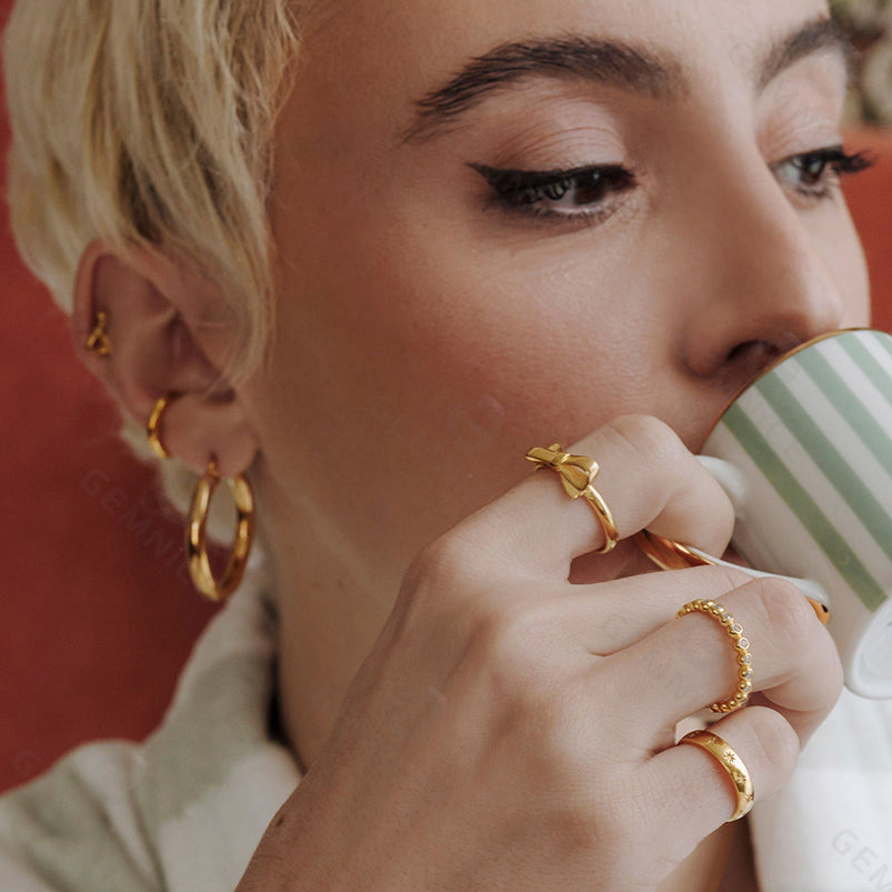 Elevate your elegance with these 18k gold plated Love Bow Stud Earrings. Expertly crafted, their delicate bow design symbolizes affection and charm, making them ideal for both everyday wear and special occasions. The high-quality plating ensures lasting shine, while the secure stud backing offers comfortable and reliable wear. Perfect for gifting or personal indulgence, these earrings add a subtle yet sophisticated touch to any collection.