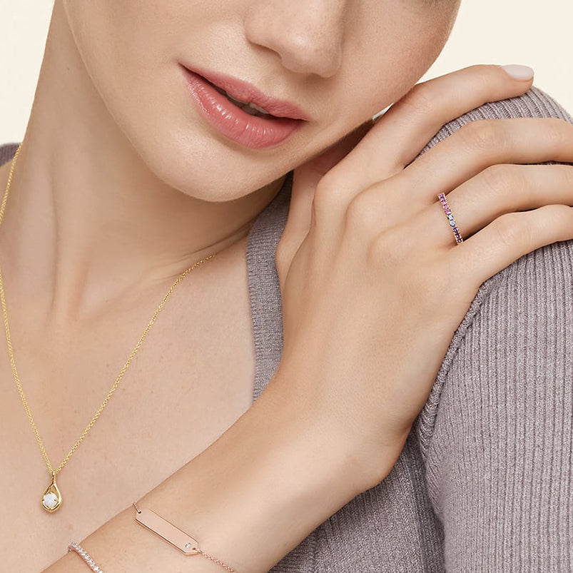 This exquisite ring features a delicate lilac band adorned with a rainbow gradient of zircon stones, expertly set to catch the light from every angle. Crafted from 925 sterling silver and plated with 18K gold, it offers both durability and a luxurious finish. Designed for girls and women who appreciate refined elegance, this piece combines vibrant color with timeless craftsmanship for a sophisticated accessory suitable for any occasion.