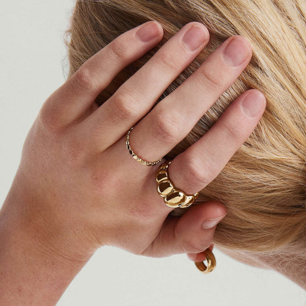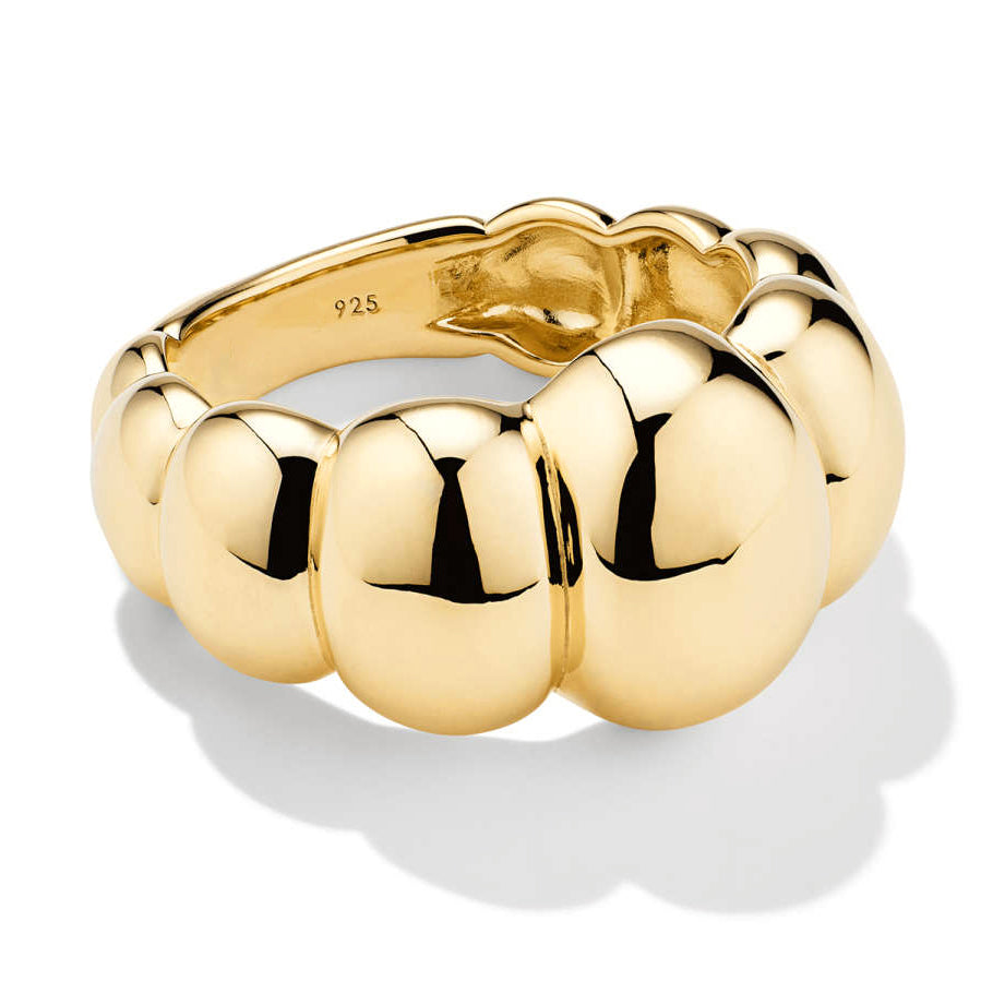 Crafted with precision, this dome band ring features a 925 sterling silver base enhanced by an 18k gold vermeil coating and a protective rhodium plating. The combination ensures lasting shine, durability, and resistance to tarnish, making it an excellent choice for those seeking both elegance and longevity in fine jewelry. Its smooth dome design offers a timeless aesthetic suitable for everyday wear or special occasions.